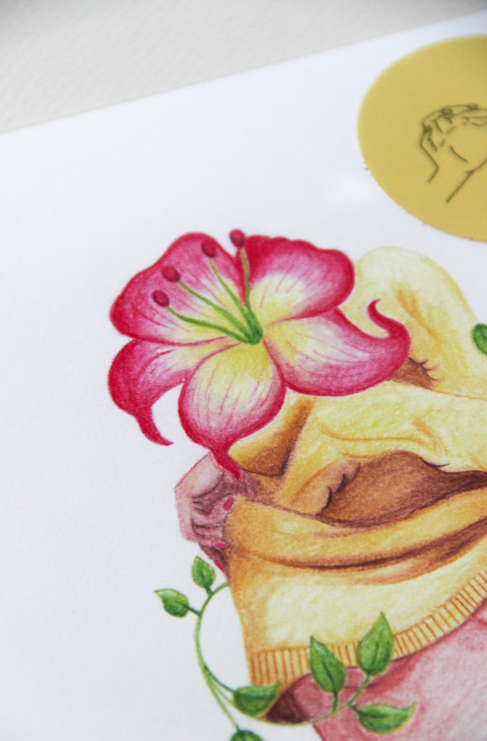 Illustration dessinée aux crayons de couleur sur papier de 160g/m2.